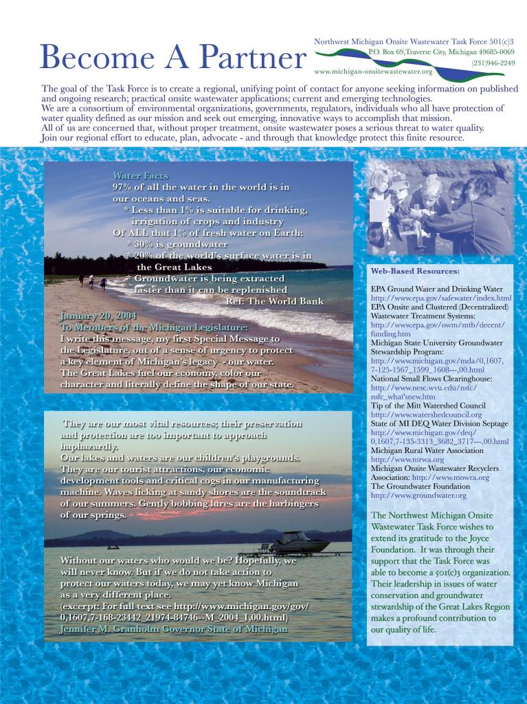 Our purpose is to demonstrate that onsite wastewater treatment technologies which are accepted, proven and permitted in other states can and will work here in Michigan.
