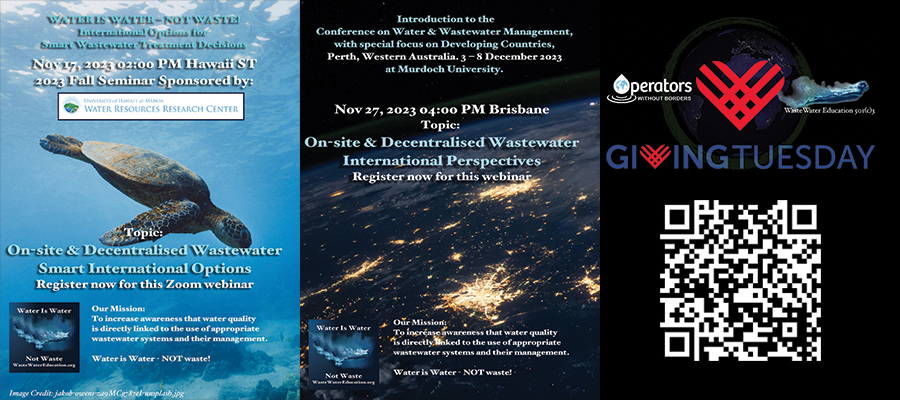 WasteWater Education 501(c)3, with 21 years of operation, provides access to education and resources that increase public awareness of the link between appropriate wastewater systems and (1) clean drinking water, (2) safe recreational waters, (3) environmentally sustainable surface, and (4) groundwater with watershed-based best management practices.