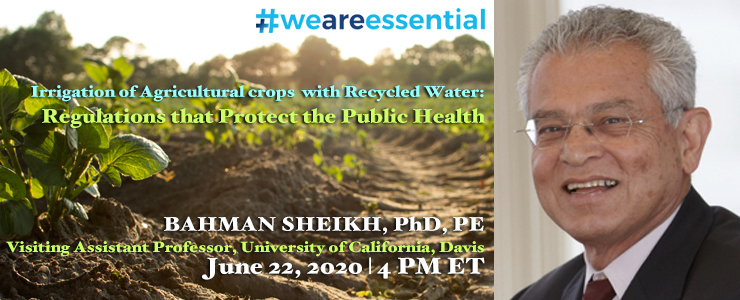 This webinar focuses on the experience gained in the field in California and other regions over the past several decades regarding use of recycled water for irrigation of agricultural crops. Regulations governing use of recycled water for agriculture will be discussed comparing their stringency and effectiveness with special emphasis on microbial risks. Chemical risks from use of recycled water for irrigation will also be discussed summarizing research findings of recent years, particularly with regard to constituents of emerging concerns, also called microconstituents.